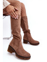 Bottes pour femmes avec une tige avant le genou. Fabriquées en éco-suède. Fermeture zippée. Montées sur un talon bas et massif. Talon raidi. Vous pouvez les utiliser dans de nombreux styles ! Elles doivent être à vous !