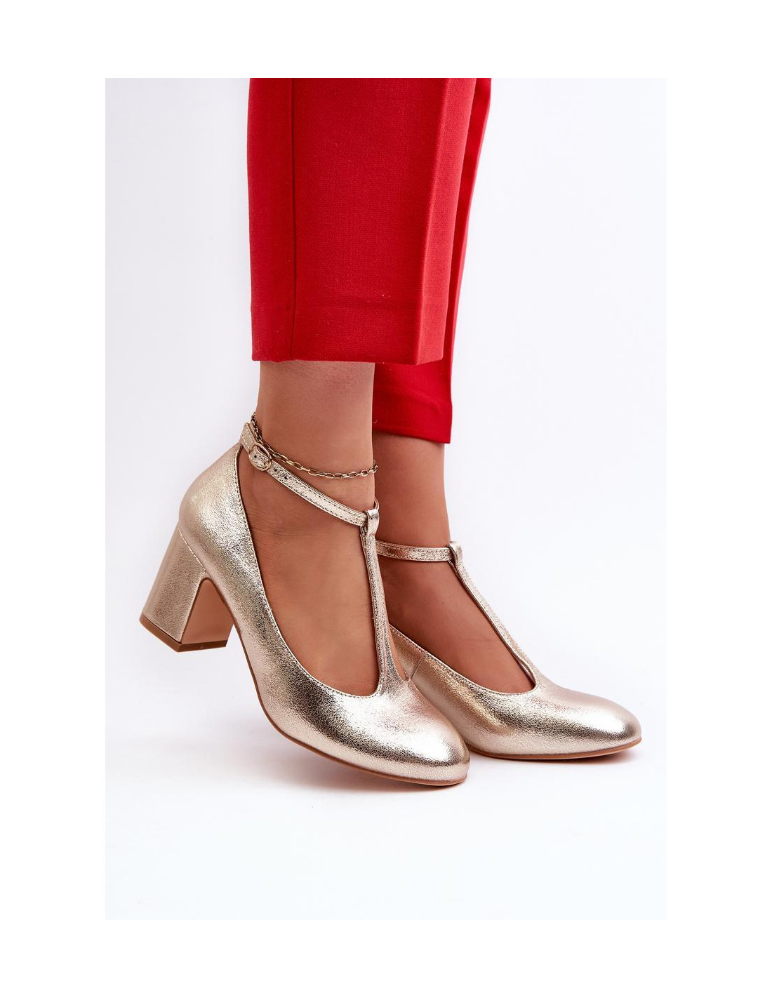 Les escarpins pour femmes en cuir écologique sont des chaussures idéales pour les femmes qui apprécient le style et le confort. Talon stable en forme de colonne. À l'avant, une fine bride ajoute une touche de délicatesse et de charme. Fermeture par bride réglable avec boucle pour un ajustement précis au pied. Bout arrondi. Semelle intérieure en cuir naturel. Parfaits pour de nombreuses occasions, des tenues quotidiennes aux événements spéciaux.