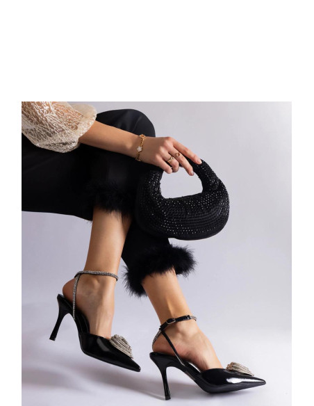 Les escarpins noirs à talons hauts avec le talon ouvert ornés de zircons Isoda Dolores sont le choix idéal pour toute femme élégante. Ces magnifiques chaussures sont fabriquées en cuir écologique de haute qualité, garantissant durabilité et confort. Les décorations citronnées leur ajoutent de l'élégance et du chic, en faisant un complément parfait à toute tenue. La boucle de fermeture les rend faciles et confortables à porter. Ces talons hauts attireront certainement l'attention et vous feront vous sentir exceptionnelle. Parfait pour les soirées d'été !