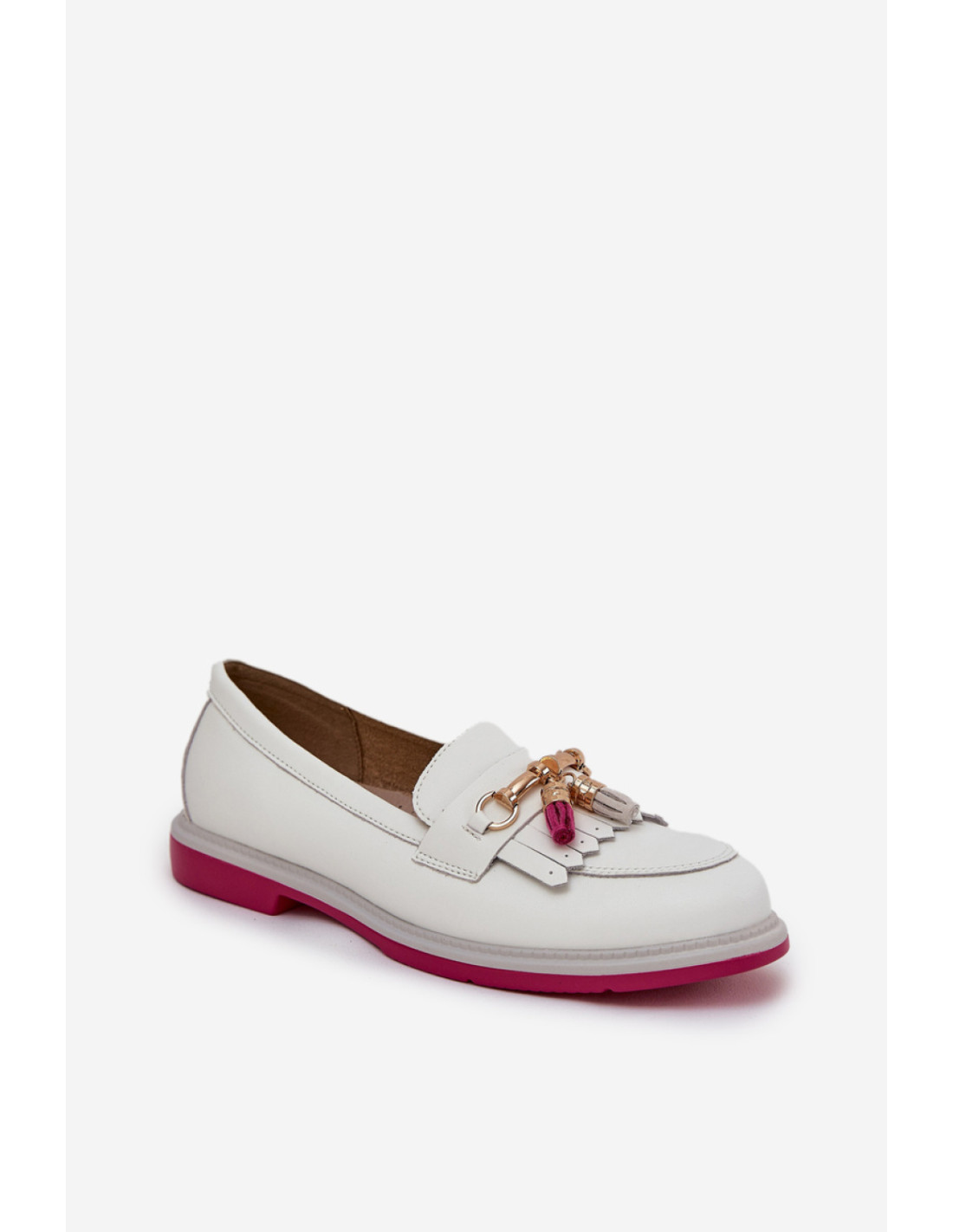 Les élégants mocassins de la marque S.Barski sont une proposition élégante pour toutes les occasions. Fabriqués en cuir naturel. Placés sur un talon plat, ils assurent un confort toute la journée. À l'avant, un ornement qui apporte un charme subtil et un caractère unique. Ces mocassins seront un excellent choix pour des styles élégants et quotidiens, alliant confort et aspect à la mode.